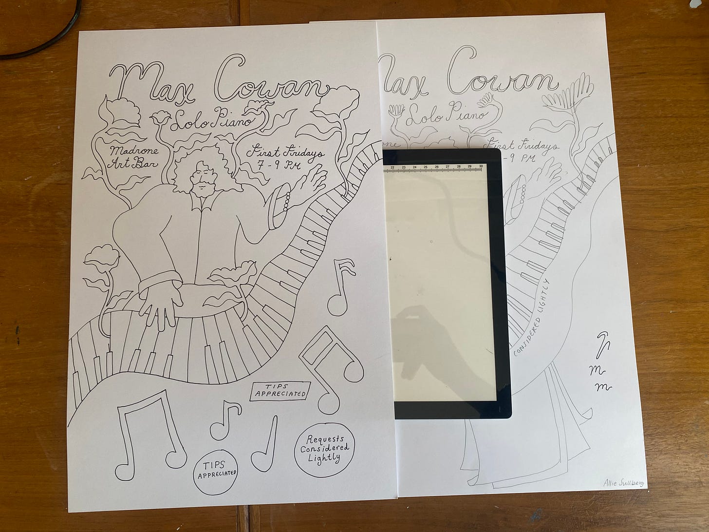 That being said. I just did some free work and it was awesome. A new friend, artist, musician, and fellow full-time freelancer Max reached out asking how much I would charge to make a poster for his concert. I thought about it, felt like it was something I really wanted to do and had energy for, and felt like I wouldn't enjoy charging another artist who I wanted to support.
