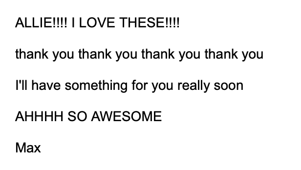 Oh and then I sent the artwork to Max and he was really really grateful. Sometimes I send people final artwork and they don’t say thank you (or companies don’t ever respond and just publish the work, and I have to send 5 emails like hey can you pay me pwease) and it makes me pretty sad. Emails like this make me very happy. Thank you Max!